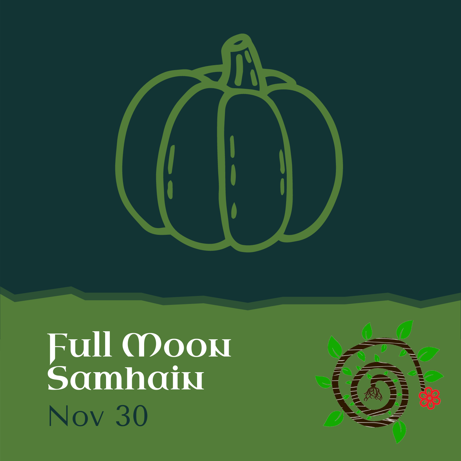 Vector pumpkin in green representing the full moon
